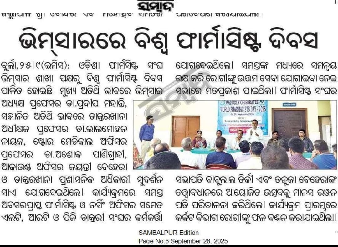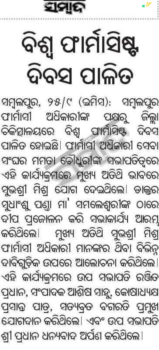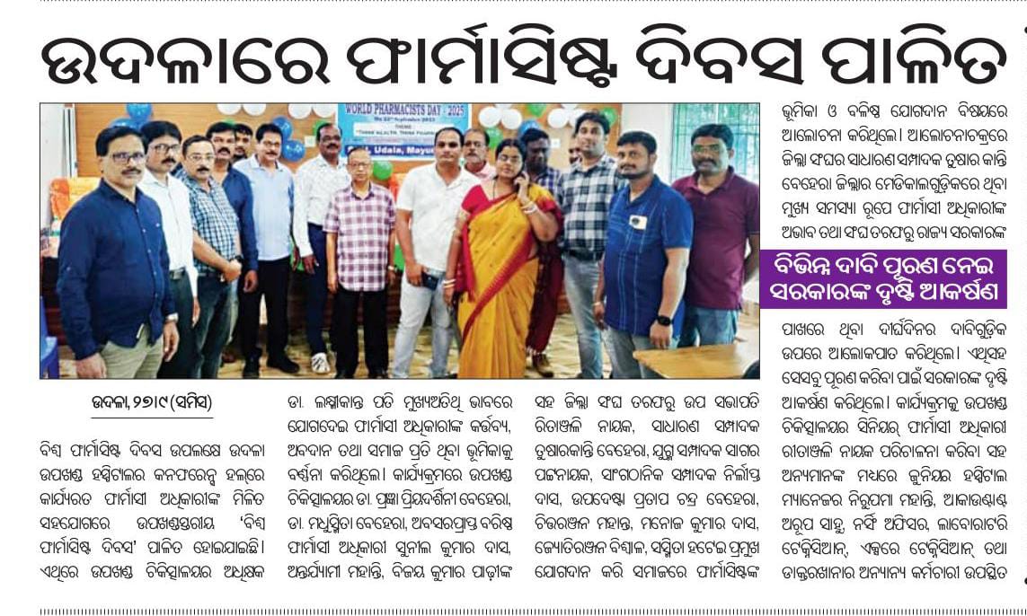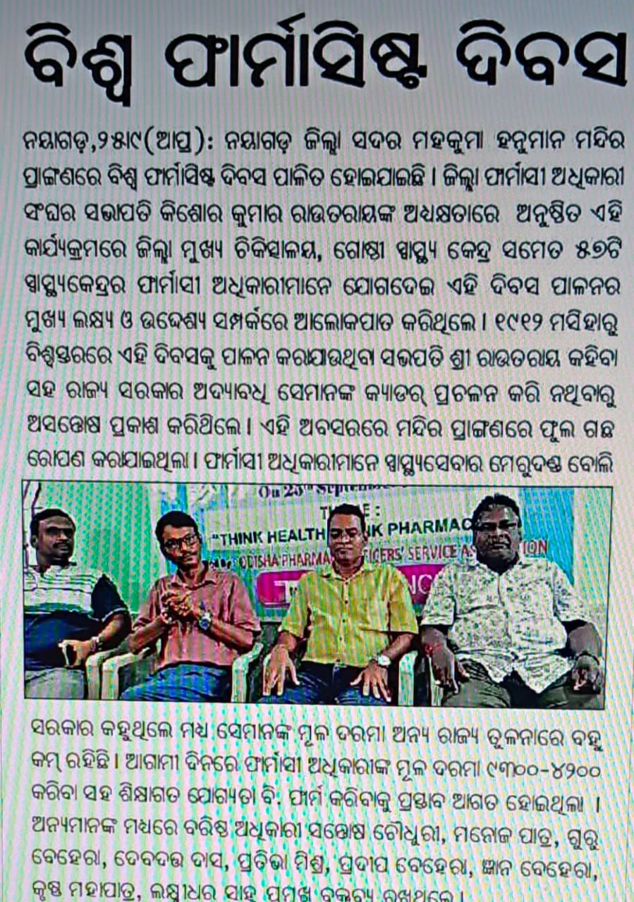 Welcome to the Odisha Pharmacy Officers Association (OPSA), a dedicated community of pharmacy professionals committed to advancing the practice of pharmacy in healthcare facilities of Govt of Odisha and recognised by Government of Odisha vide Home Department Memo No 75547 (Assn) dt.29.12.1989. Our mission is to promote excellence in pharmaceutical care, ensure the highest standards of practice, and advocate for the interests of pharmacy officers throughout the region. As frontline healthcare providers, Pharmacy officers play a crucial role in ensuring the safe and effective essential Pharmacy Service to the Citizens of Odisha like Patient Care, Dispensing of Drugs, Rational use of Drugs, Patient counselling, Procurement of Drugs & its management, Crucial role in supply chain Management top to bottom & vice versa and Equipment Instrument furniture Management at facility level and smooth management of the Hospitals. At OPSA, we believe in the power of collaboration and continuous learning. We provide our members with access to valuable resources, professional development opportunities, and a platform to share knowledge and best practices. We are passionate about fostering a supportive environment where pharmacy officers can thrive and make a meaningful impact on public health. Join us in our efforts to enhance the pharmacy profession in Odisha, as we work together to ensure that our community receives the best possible care. Together, we can shape the future of pharmacy in our region. Thank you for being a part of our journey!